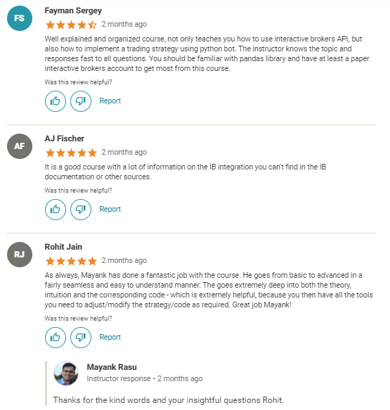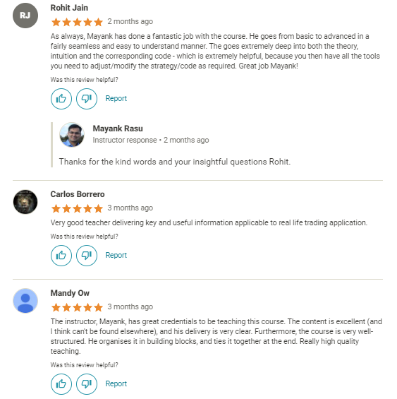 We understand that algorithmic trading and quantitative finance is an involved topic and therefore students are expected to have questions as they progress through the course. We consider Q&A as a critical part of learning experience and support it actively.
